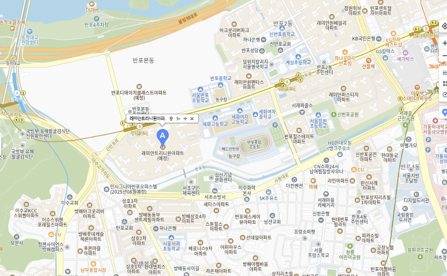 - 학군: 반포초, 반포중, 세화여중·세화고·세화여고, 서울영국학교(델위치칼리지) 등 명문학군 인접
